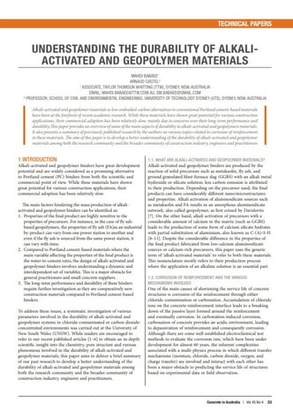 “A geopolymer designed considering its chemical and nano-to-micro-structural properties to achieve a specific durability performance can reduce the carbon emission associated with the production of ordinary Portland cement of up to 80%”