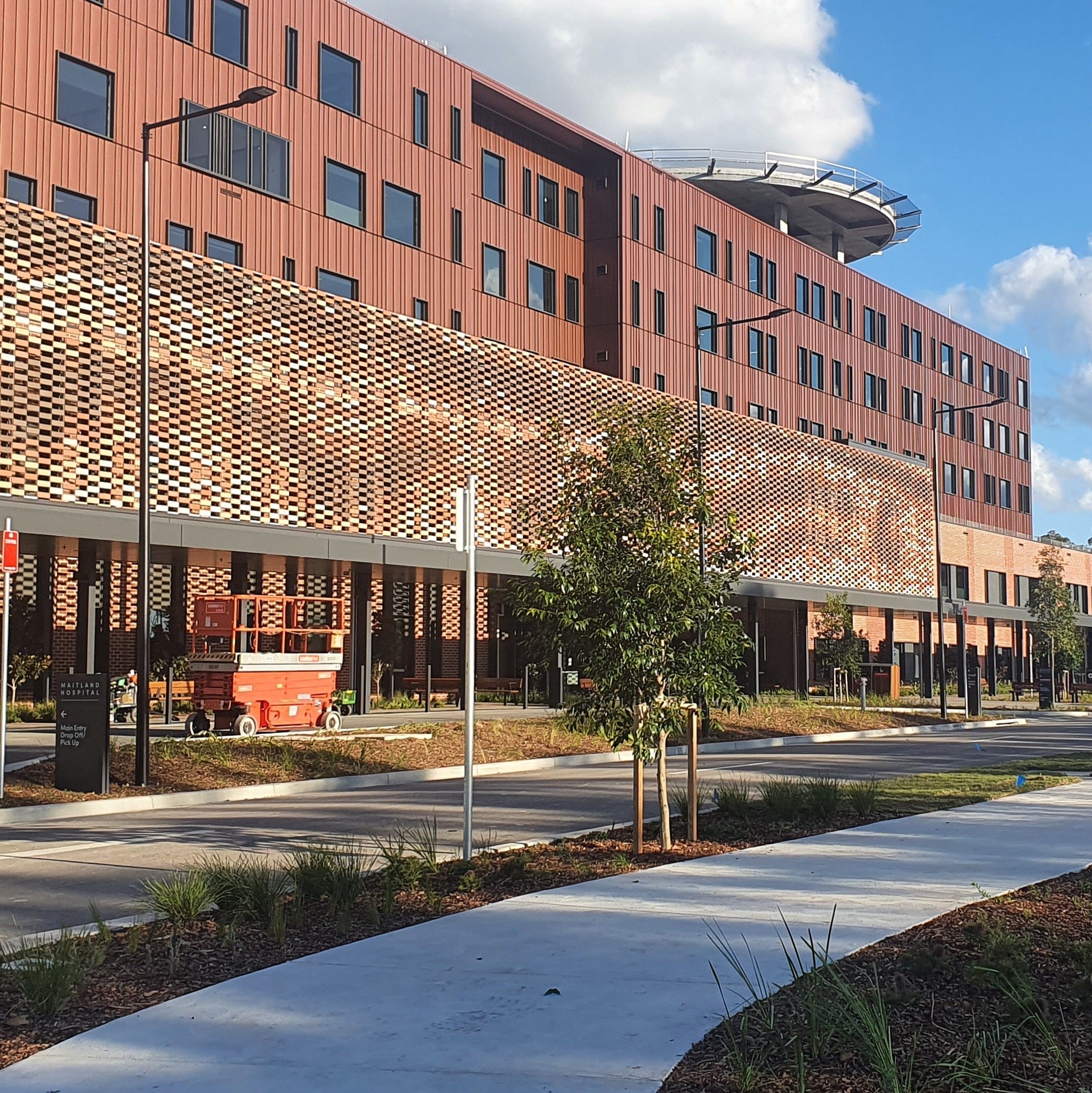 Photos (clockwise from top left): NGV Contemporary, designed by Angelo Candalepas; Maitland Hospital; Gosford Hospital; Wynyard Walk.