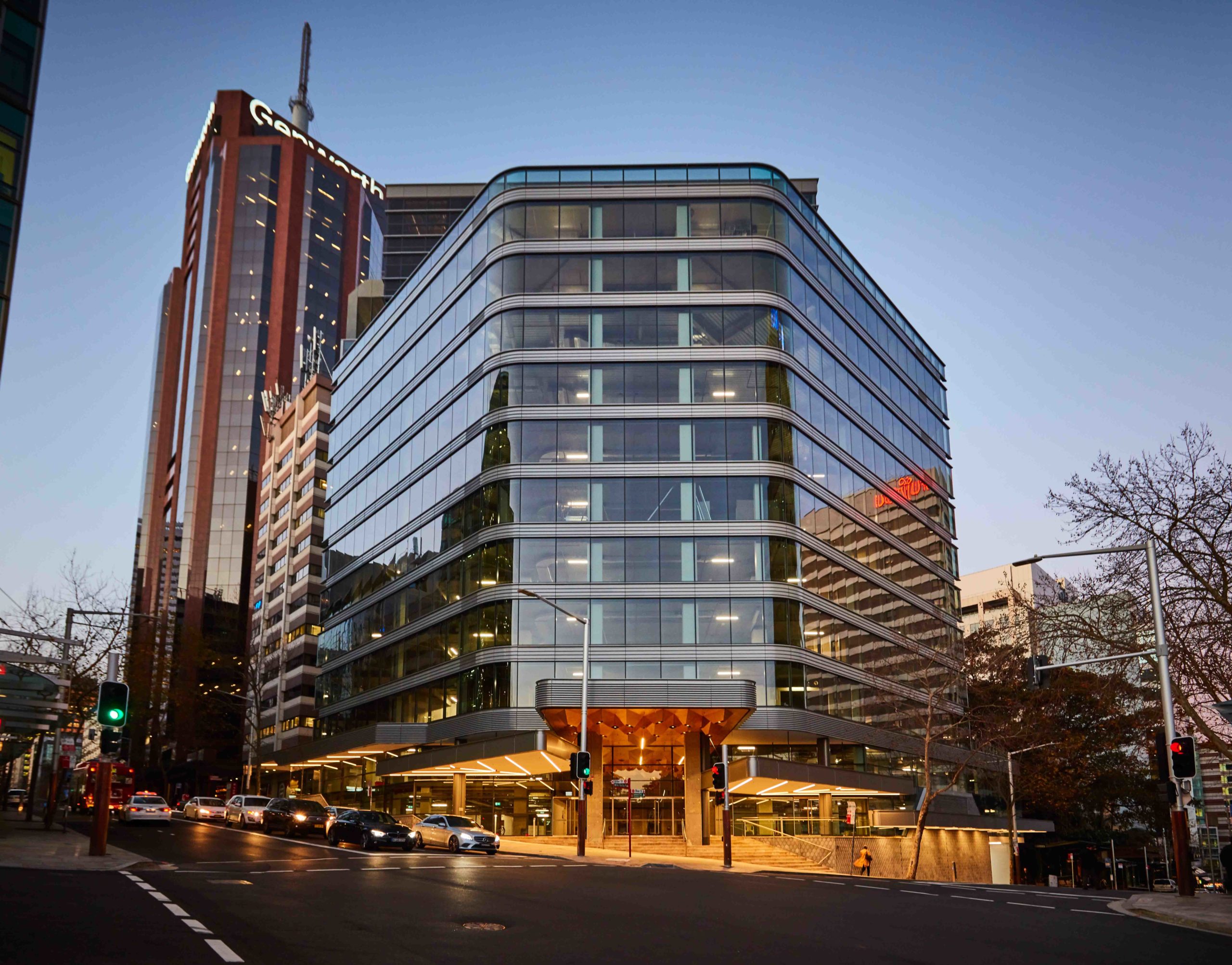 Situated on a prominent corner location directly adjacent to North Sydney railway station, 73 Miller Street has been transformed into a high-quality A-Grade office building with ground-floor retail and 13 levels of office accommodation.The refurbishment of the 30-year-old existing building includes the extension of the floor areas from Level 1 to 11 and 2 levels to the existing structure.
