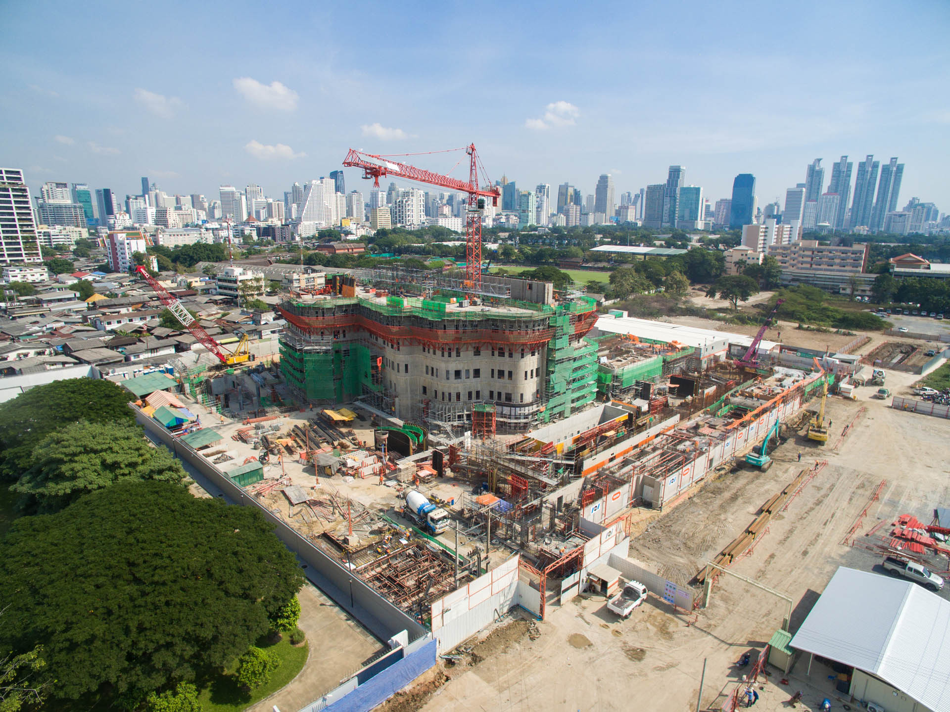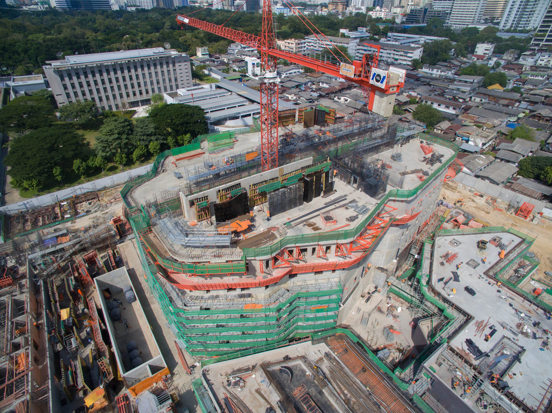 Time and costs were reduced by using piling designed with a refined settlement analysis to allow loads significantly higher than those generally used in Thai construction.