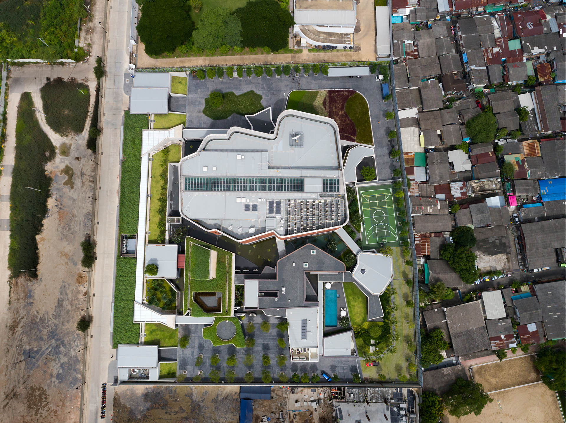 Challenges were involved due to the complex architecture and high level of detail, as well as the poor ground conditions and a site prone to local flash flooding. An innovative site surface stormwater gravity drainage system ensures the site will not be inundated when streets flood.