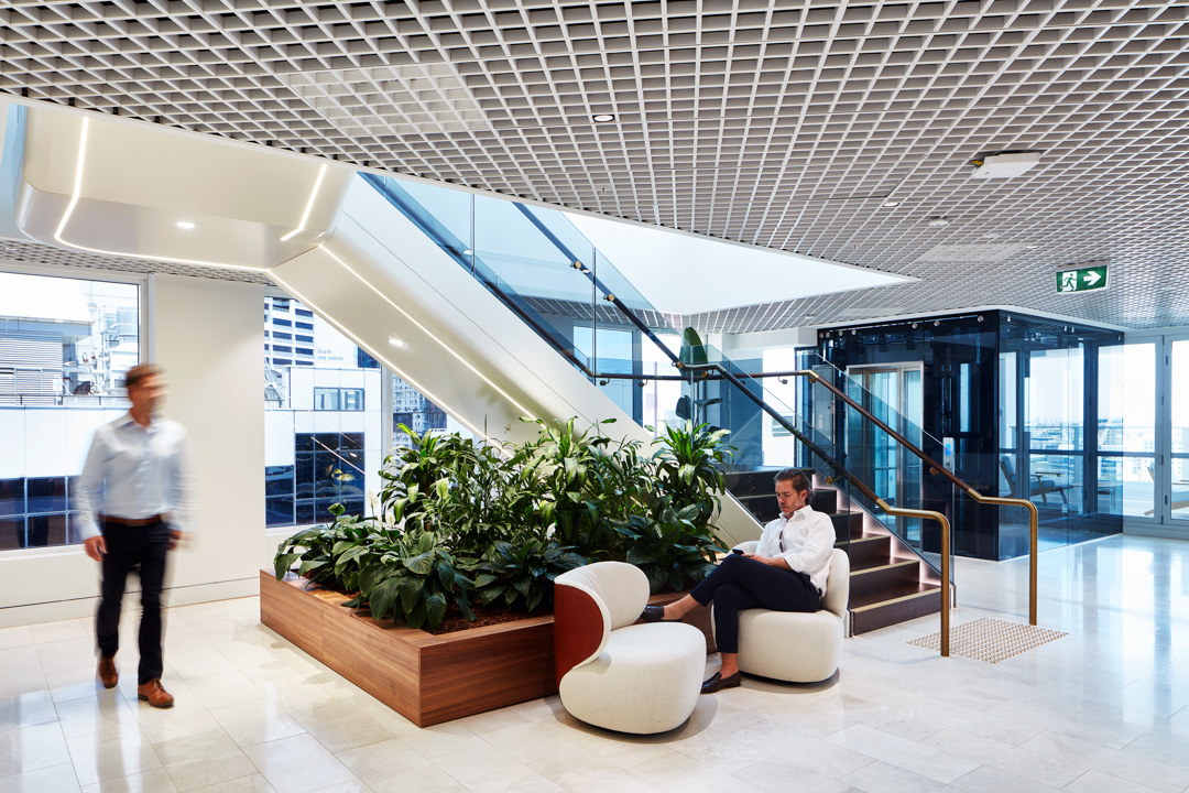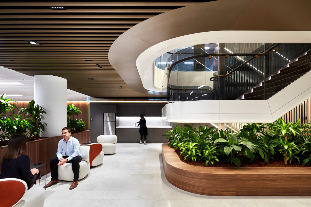 The successful completion of the Bank of China Stage 1 at 140 Sussex Street involved the full refurbishment of the existing 1988 building over 15 levels and 8000sqm. The project brief was to deliver a high-end workplace including but not limited to executive areas, static work points, collaborative areas, various interconnecting stairs, data centre, and commercial kitchens. The project involved significant structural modifications including the following notable features:- Inter-connecting stairs
