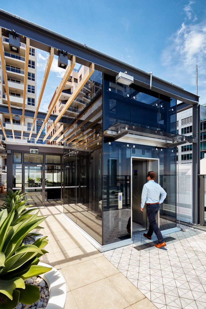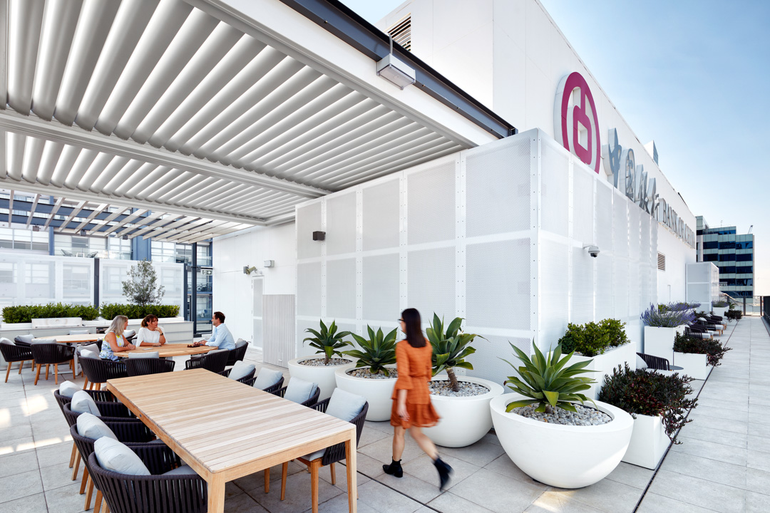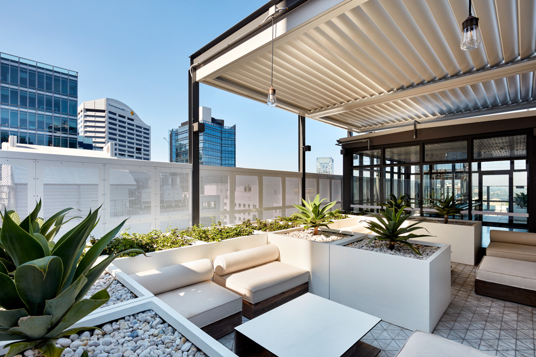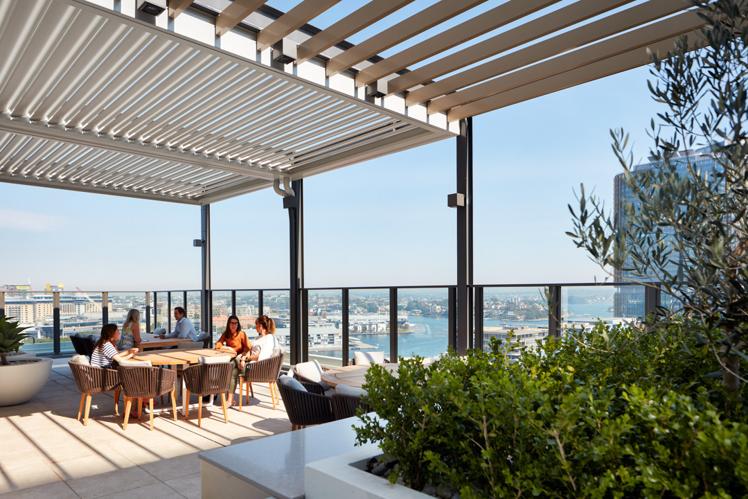 - Rooftop garden and function space including pergolas converted from an existing BMU track and building maintenance space