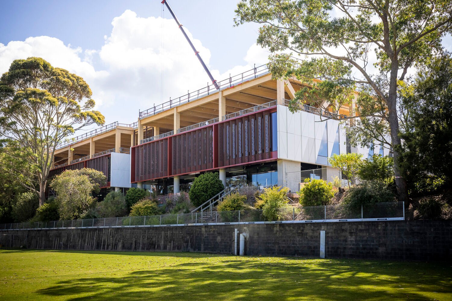 Our team provided ongoing support throughout the construction phase to ensure the structural design was implemented as intended. The result of our work is a striking and innovative structure that is both functional and visually stunning. The Barker College Maths and Student Hub has become a landmark building on the school's campus, showcasing the potential of mass timber construction for educational and public spaces.