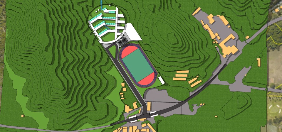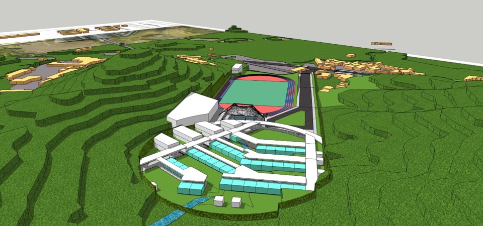 With 13,000 m2 in floor area, this project includes two buildings featuring a modern international school with an Olympic size swimming pool, gym, track field, labs and auditorium facilities, among other facilities.Currently, at the design stage, this project is situated in a narrow valley between mountains with variable ground surface contours, involving a large volume of materials and potential slope stability hazards.