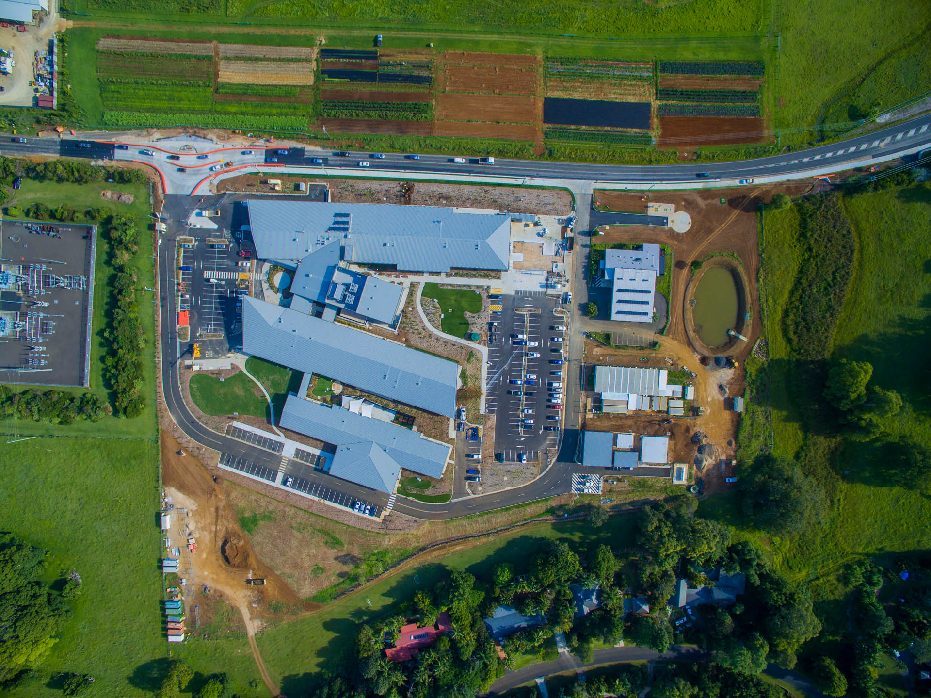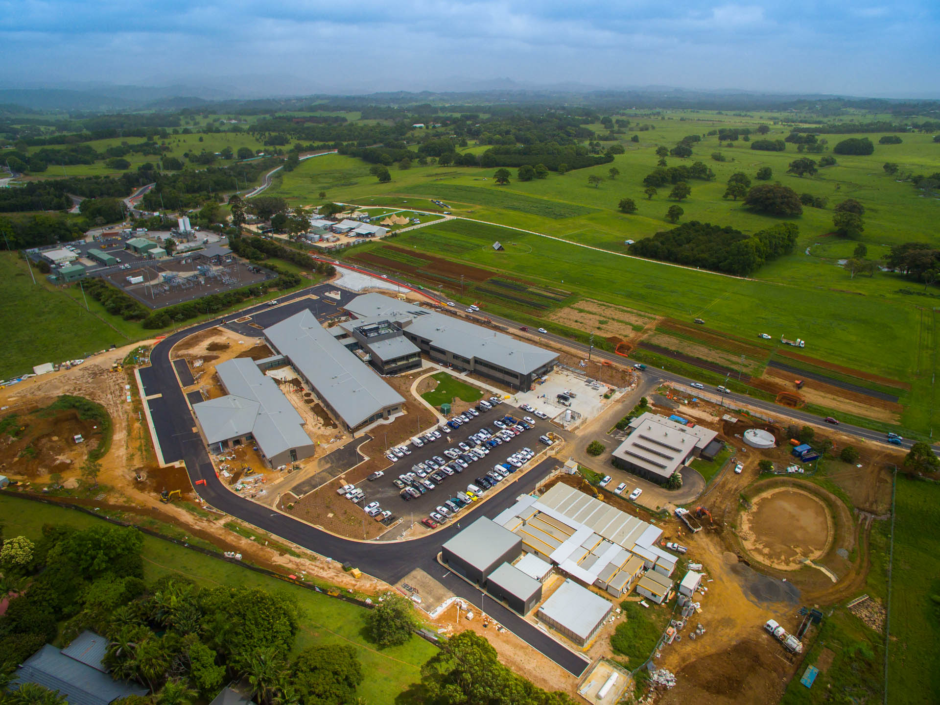 TTW's experience with large hospital projects was key in managing the complexities and demands of the new Byron Bay hospital. The project called for the delivery of a new regional facility that would replace and centralise existing hospitals, with flexibility for potential modifications and future expansion.Challenges and concerns included a large building footprint over reactive soils, an accelerated construction program, high wind environment, and the associated roadworks required. Engineering solutions involved screw-piled foundations with void formers beneath the slab on ground, and utilisation of a fine-tuned steel portal frame design that is fast to erect. Road development (including a new roundabout and access from busy Ewingsdale Road) commenced prior to the finalisation of the building footprint, requiring careful design consideration and a staged approach to construction.