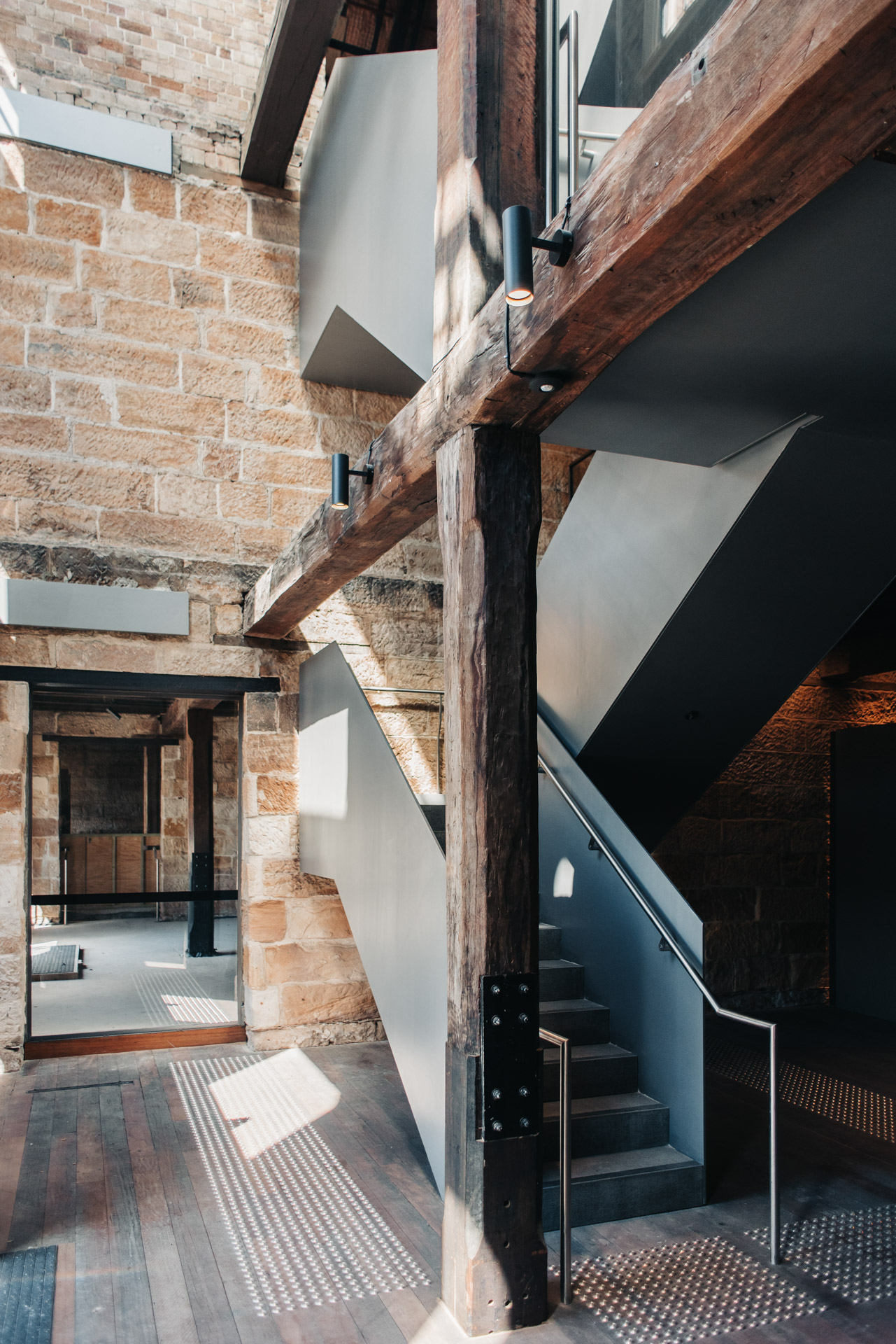 In terms of heritage engineering, bulk excavation works were primarily limited to minimise risks to the structure. Demolition and strip-out works were tightly monitored. Issues uncovered included cracked sandstone footings, damaged timber columns, decay due to water ingress and rising damp. New materials sourced replicated the existing construction in type, quality and fabric.