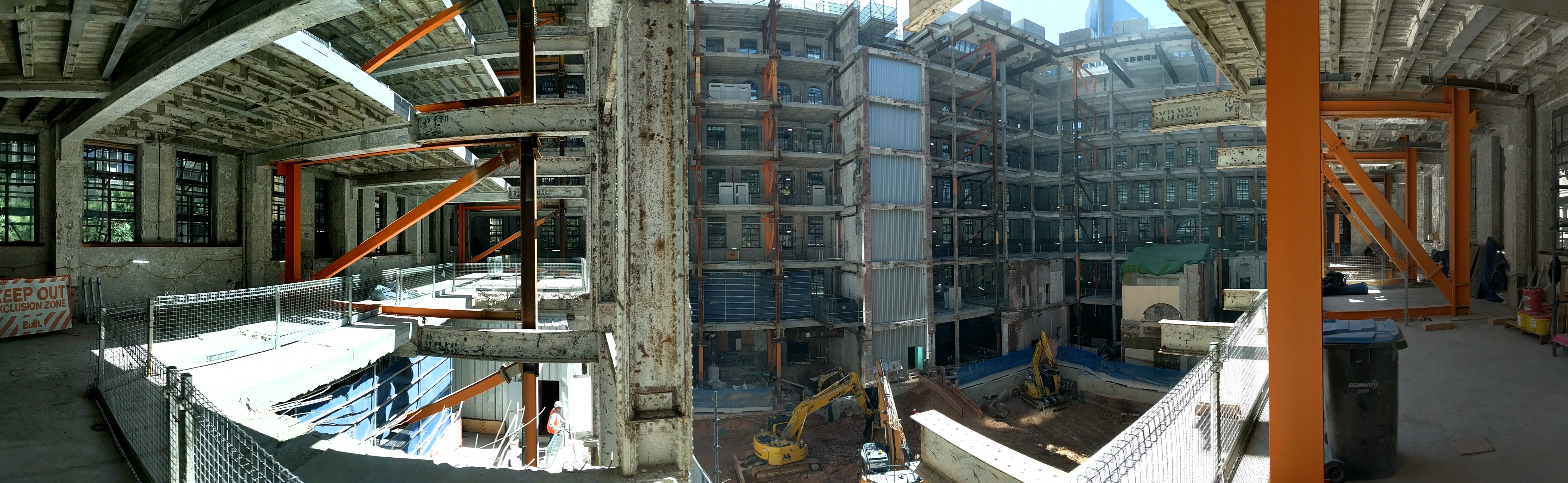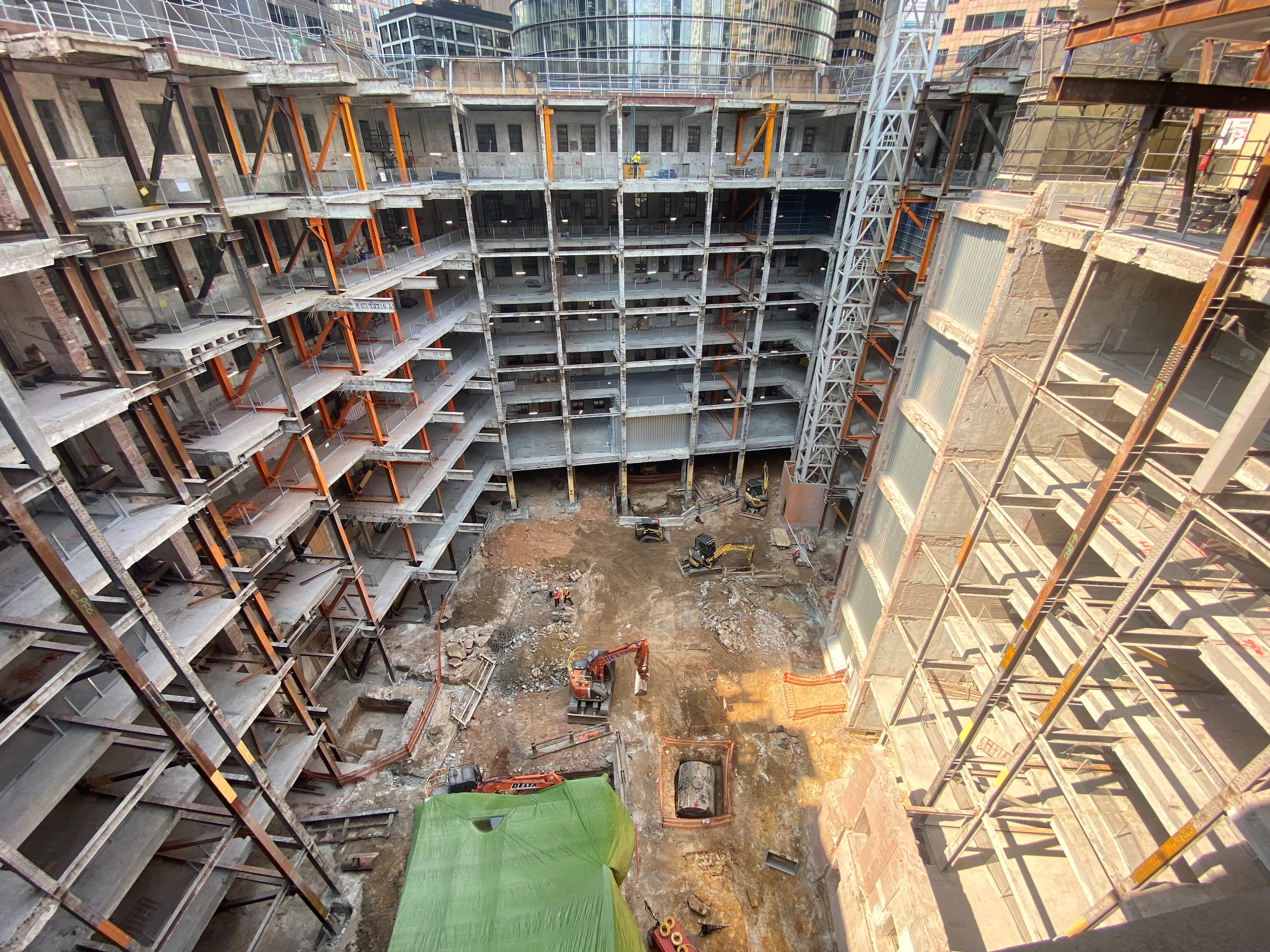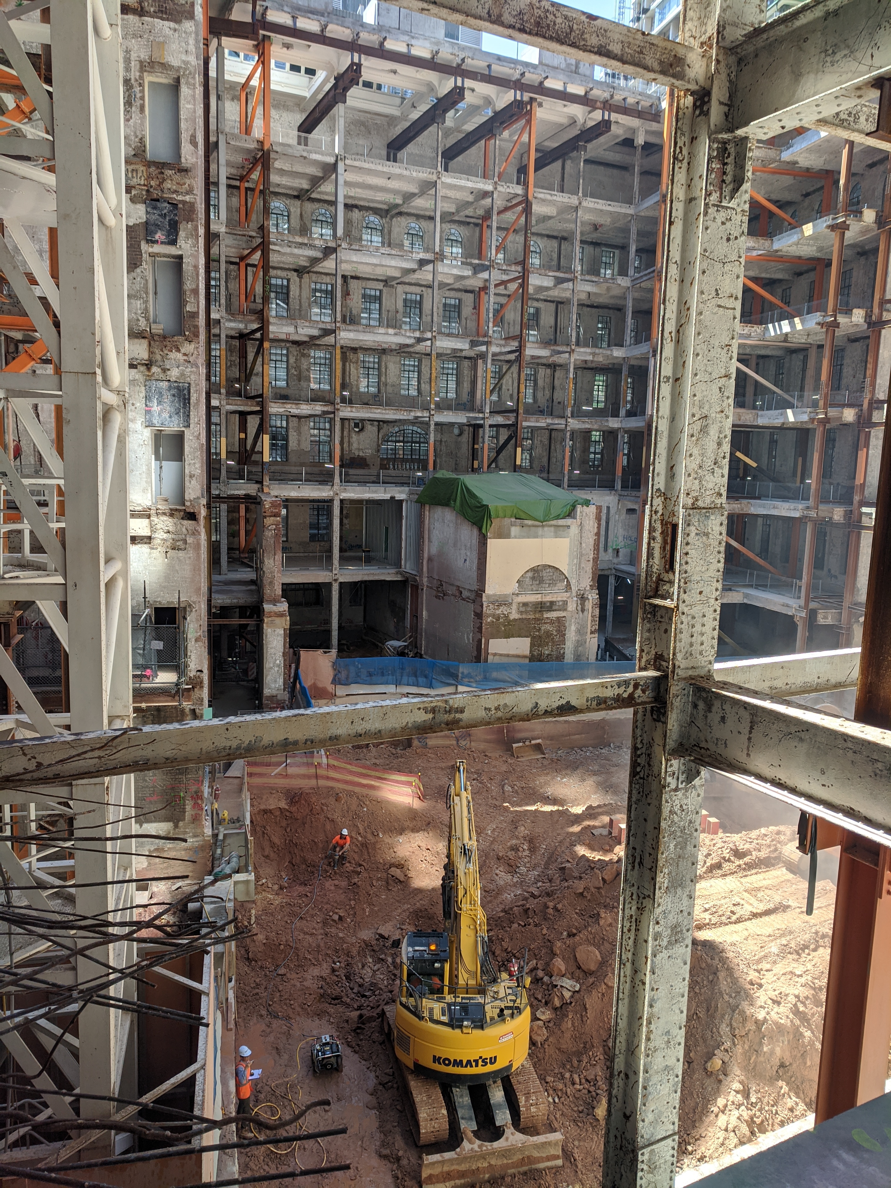 - To partially demolish the floors and excavate the basements, the existing heritage building had to be temporarily supported and stabilised by steel frames.