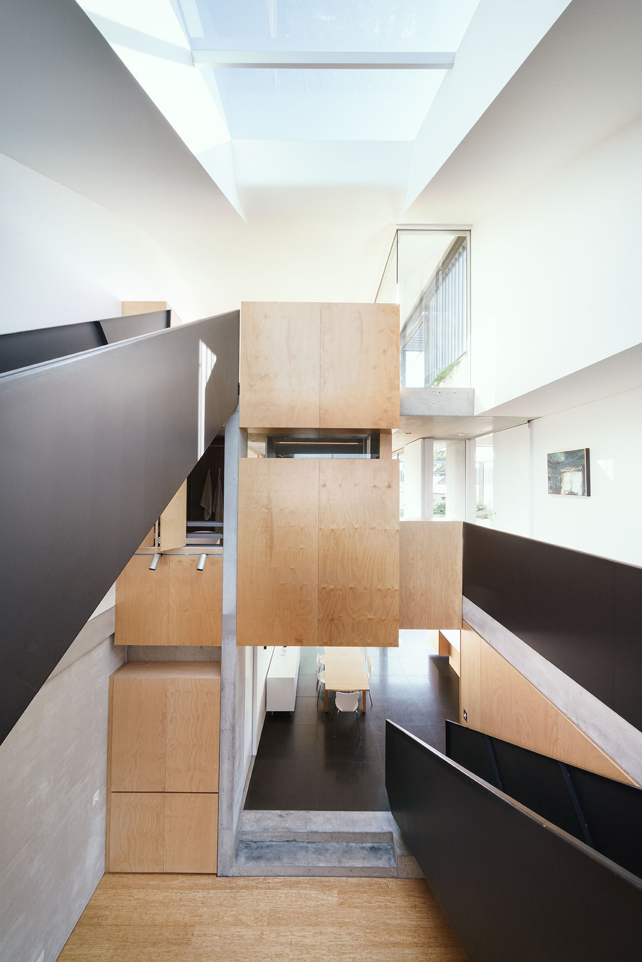 - In winter, the well-insulated structure holds the heat gained through north glazing at three levels, and dark polished bluestone floor radiates absorbed winter sun