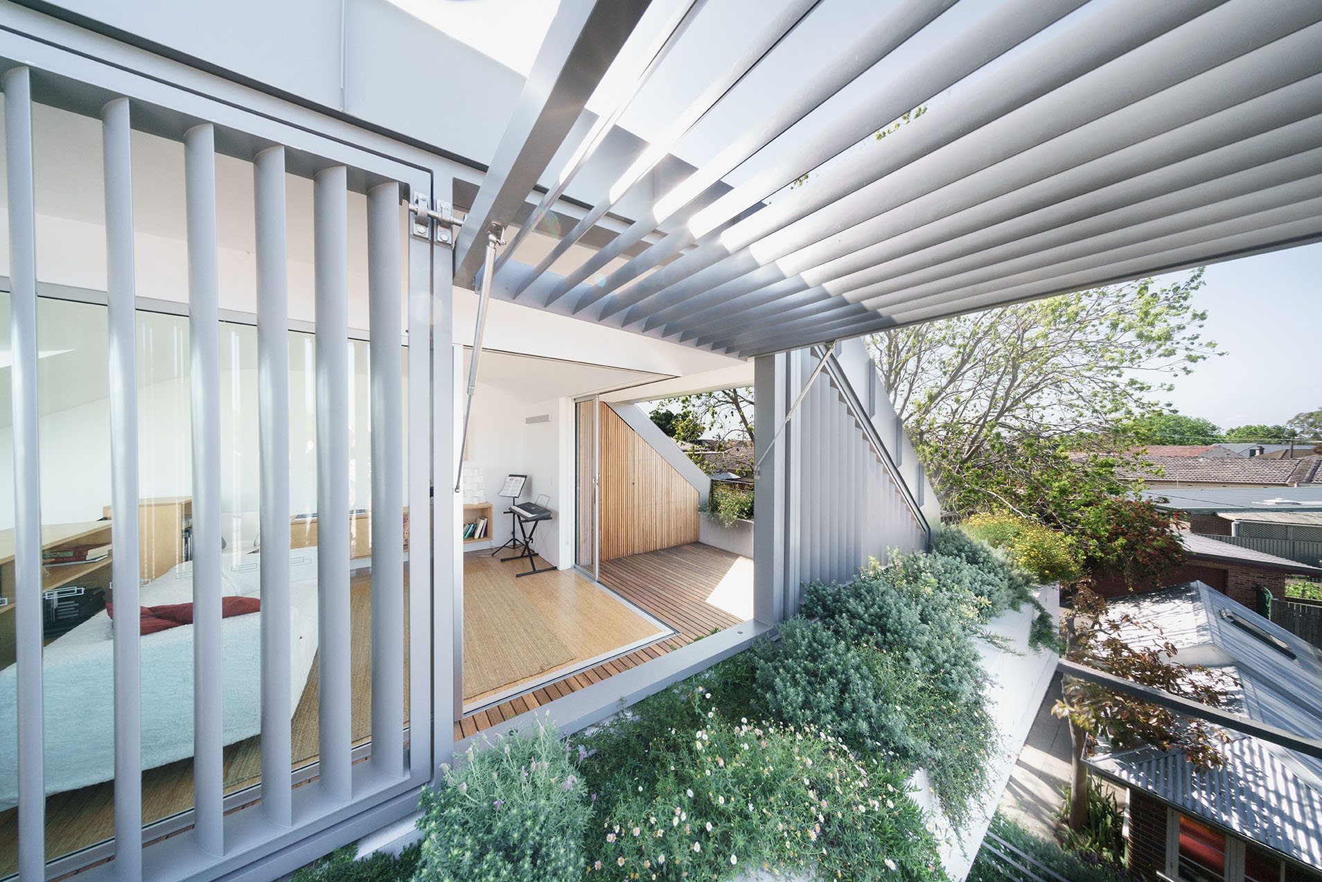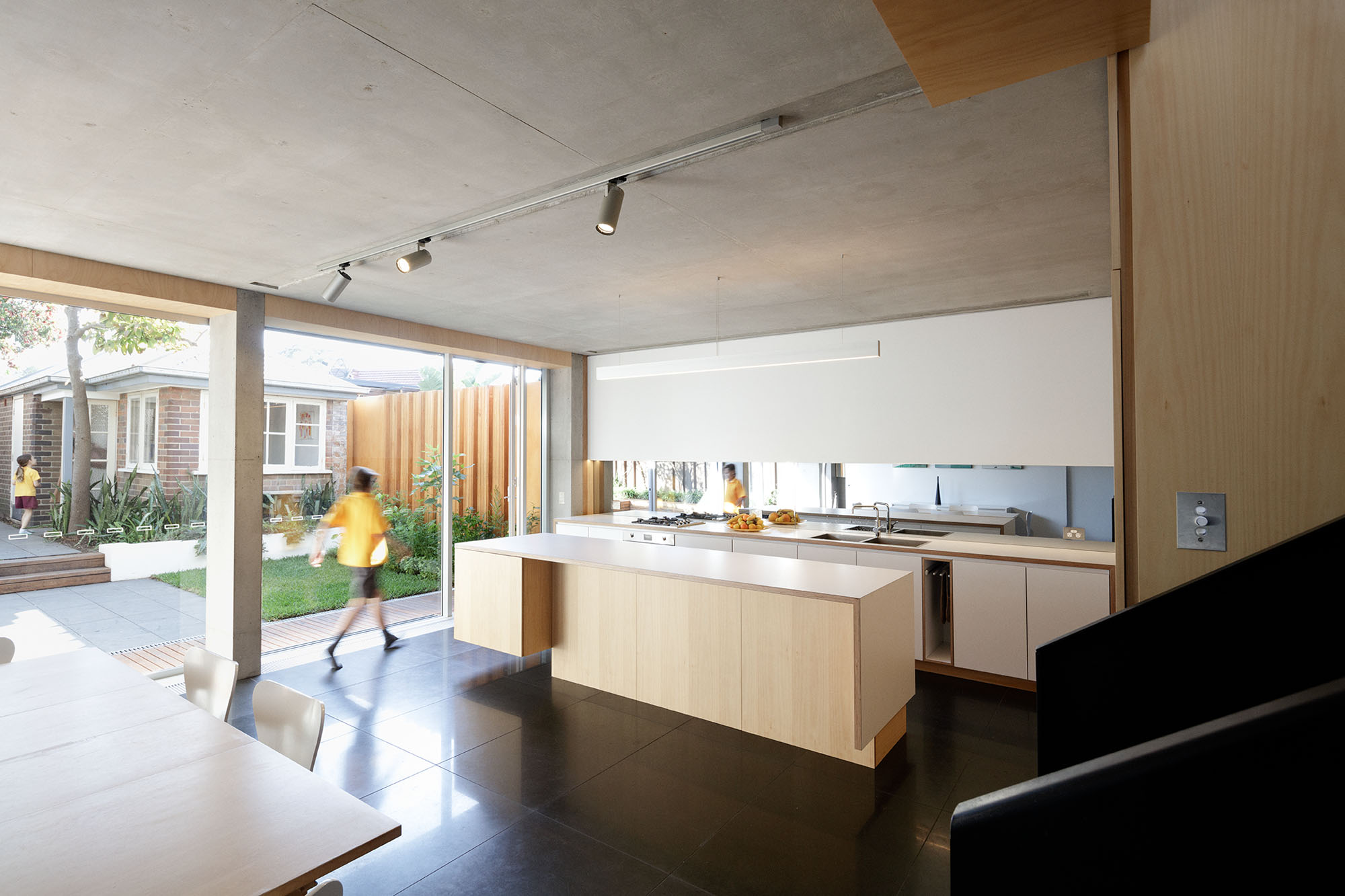 Award-winner of the Inner West Council Sustainability Award, Lilyfield House is efficient and sustainable. It uses less electricity than a one-person household and outperforms water efficiency targets. Designed with simple and reduced materials, the house contributes to sustainability with the following: