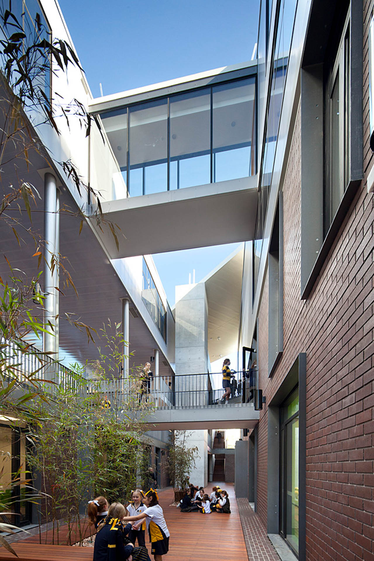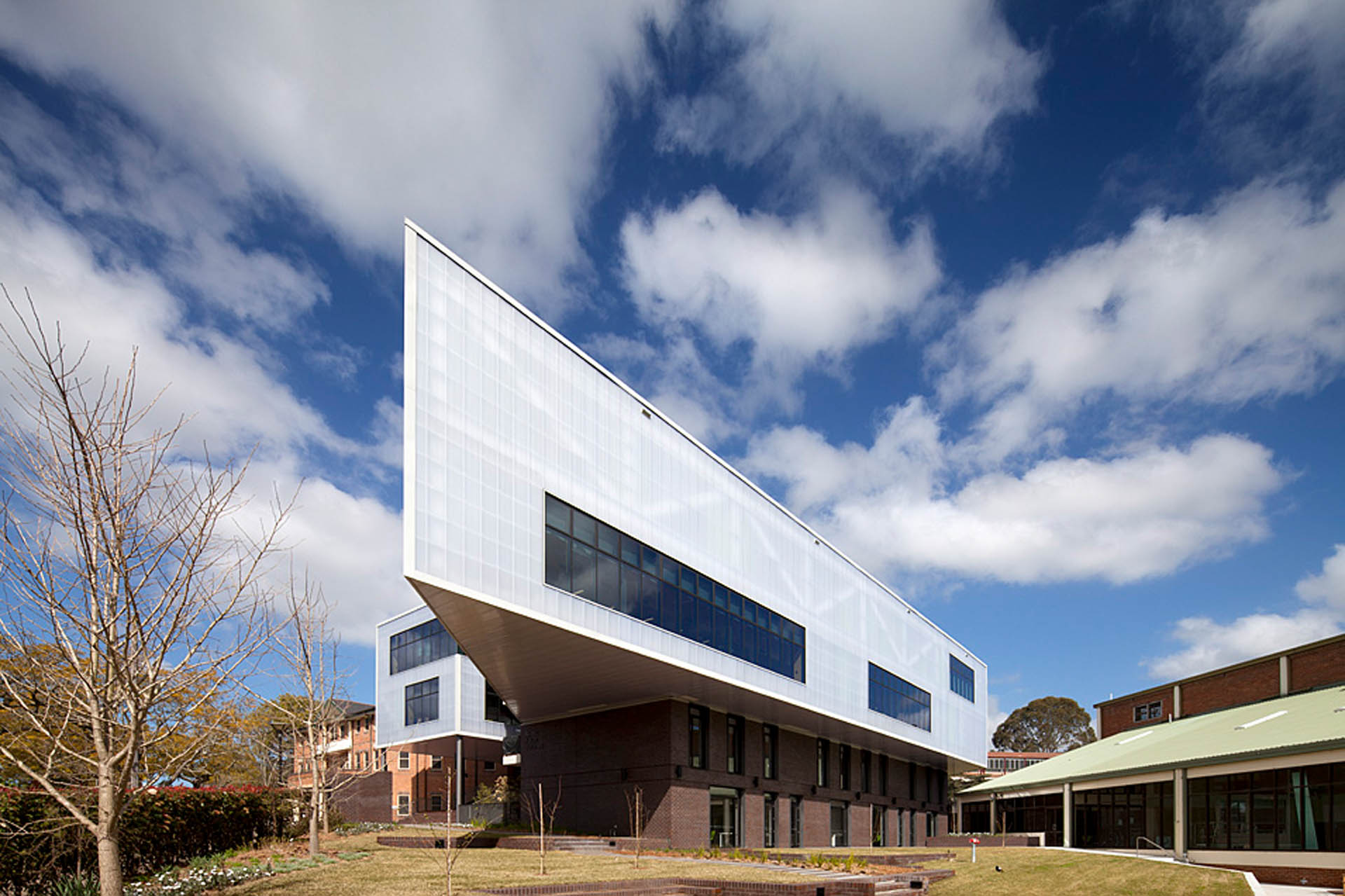 This new construction for Sydney's Ravenswood School for Girls features 16m long cantilever ends, presenting inherent challenges for the engineering team. The building functions as a central hub that provides circulation and links to different levels of older existing school buildings - addressing a site accessibility issue that has been a longstanding challenge for the school.TTW engineers provided a unique solution to the cantilever challenges involving pretension of steel trusses to balance the self-weight of the structure. Deflection at the tip of the cantilevers was controlled by hold down ties that restricted the slabs and trusses. The project also features the use of Rodeca Panels in the Façade - the first time this material has been used in a major non-industrial building in Australia.