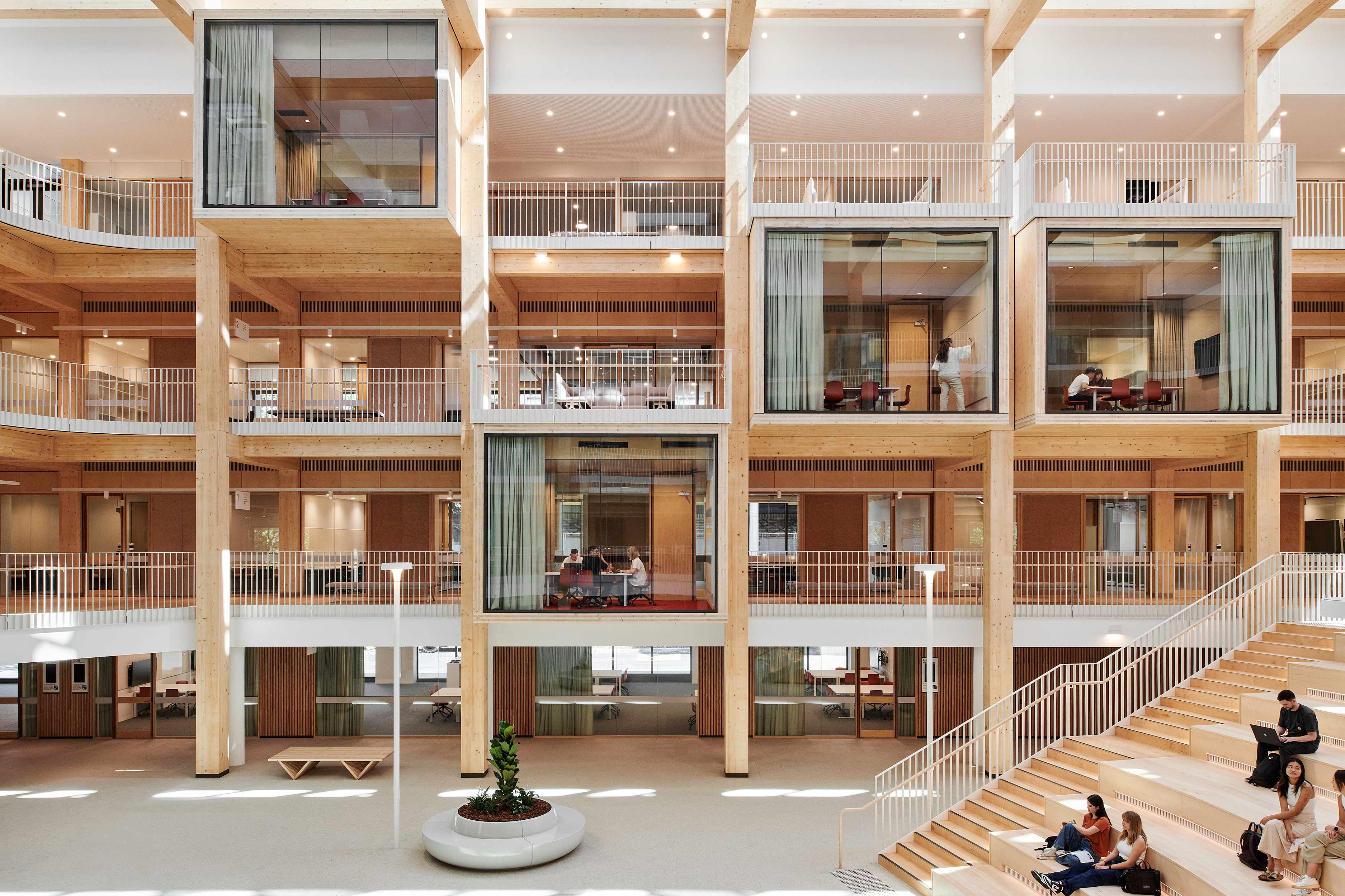 Our engineering design services spanned all phases of the project, from initial feasibility, and conceptualisation to construction. TTW’s specialist timber engineering team provided valuable input through full design and detailing of the timber structure to ensure that the showpiece of the building was efficient, quick to install, and met the architects' and clients' vision for a beautiful mass timber experience for the occupants.