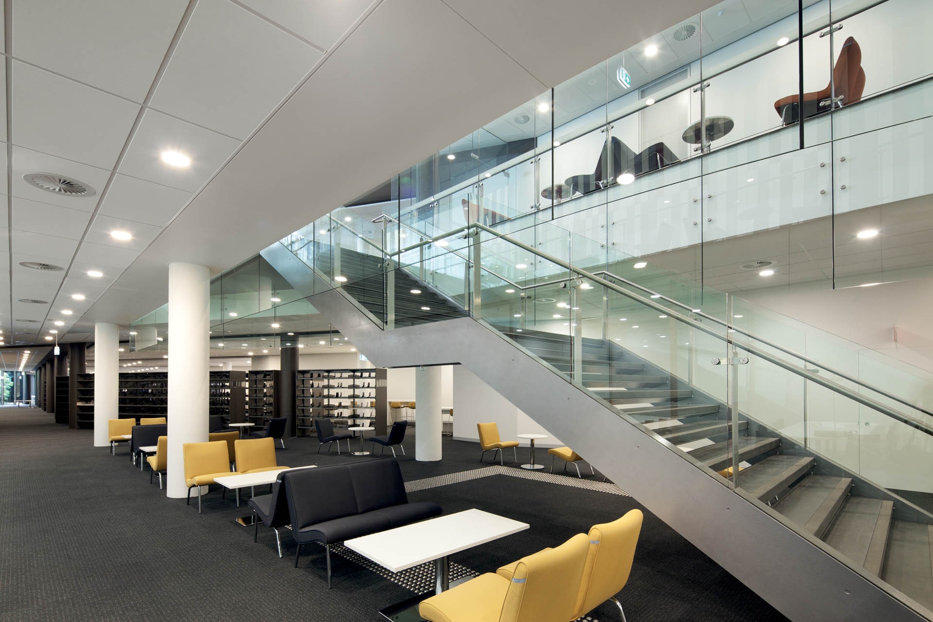 Featuring Australia's first automated document storage and retrieval system, this complex project consisted of the design and construction of a new 18,000m2, 7-storey state of the art library; incorporating learning, research and social space, landscaping and public domain works.The Automated Storage and Retrieval System consists of an environmentally controlled vault with metal bins storing the items. It allows higher density storage resulting in a significantly smaller footprint and a more affordable project cost. The slab that was utilised needed to be very flat in order to maintain vertical tolerance to the 4-storey high retrieval system storage.