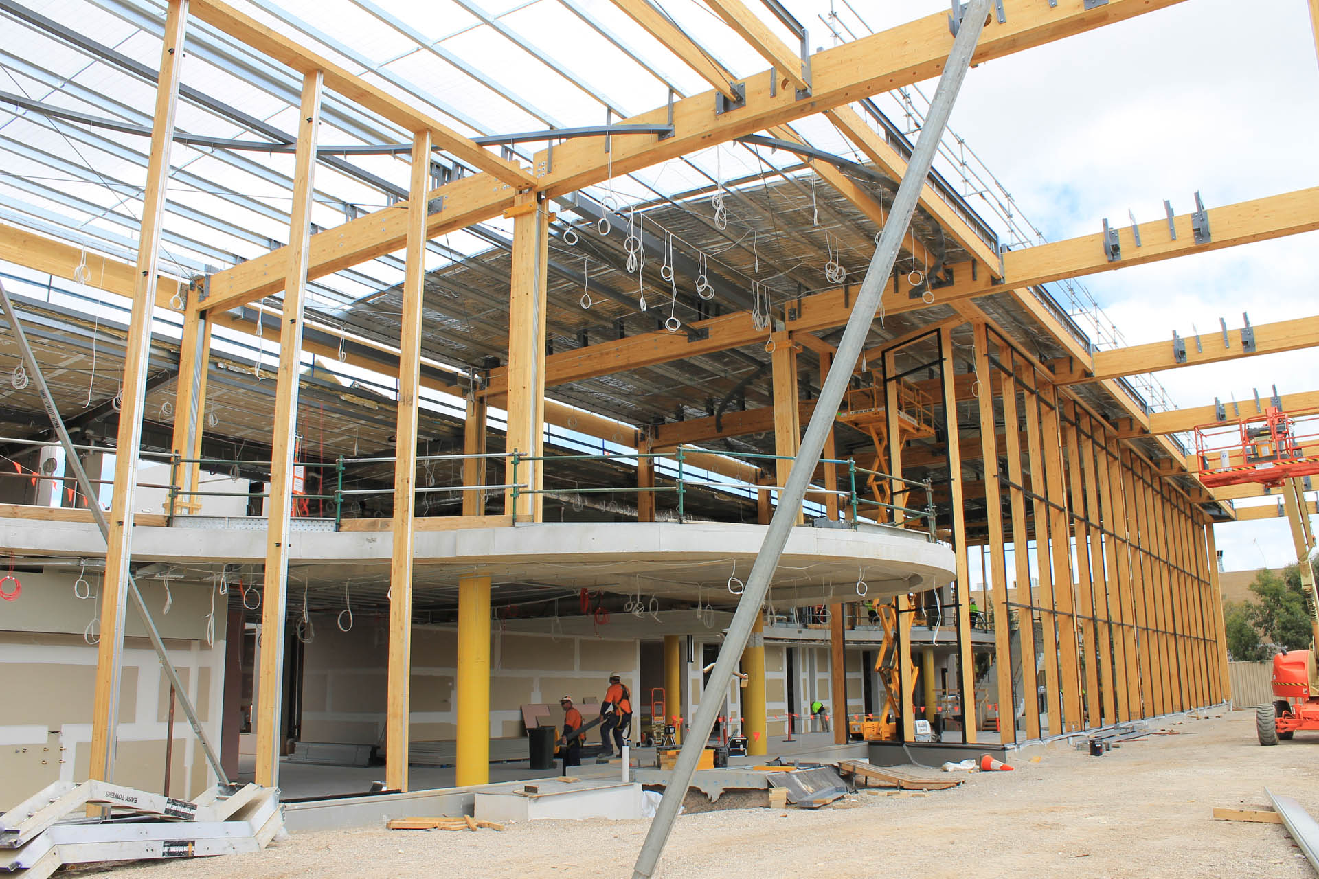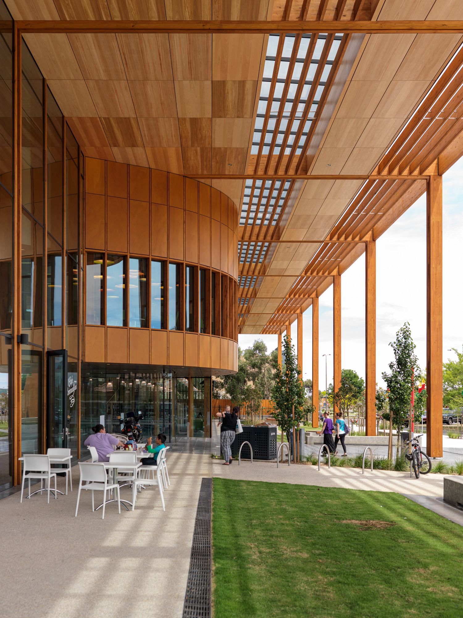 The architectural vision for Melton, which was recognised for national and international design excellence, was to deliver a facility that revitalises and re-energises the Melton community. The facility comprises a theatre, lecture rooms, recording and editing studios for use by local education centres. Elegant design and detailing of timber structures were used successfully to achieve an outstanding result. The Melton Library and Learning Hub is the first library in Australia to be awarded a 5 Star Green Star - Public Building Design PILOT rating from the Green Building Council of Australia.