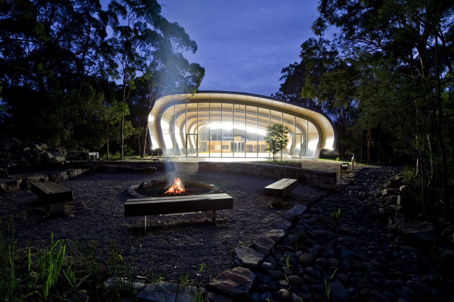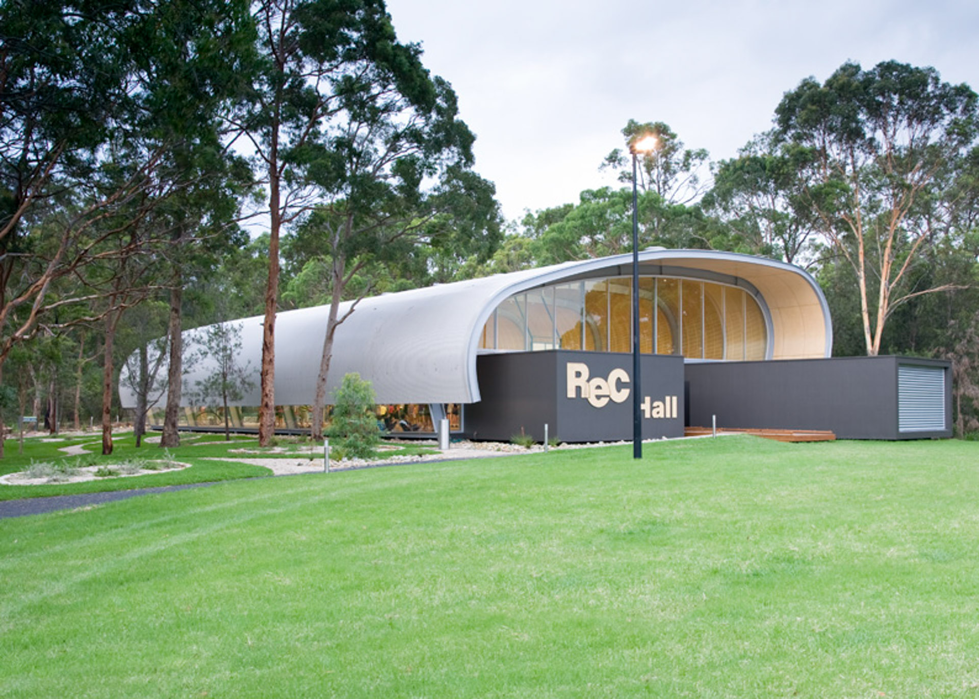 The building was designed to blend in with the surrounding bush land. It was piece-small due to transport constraints. A stressed skin plywood bay was used to provide lateral bracing without unsightly rods or tubes.