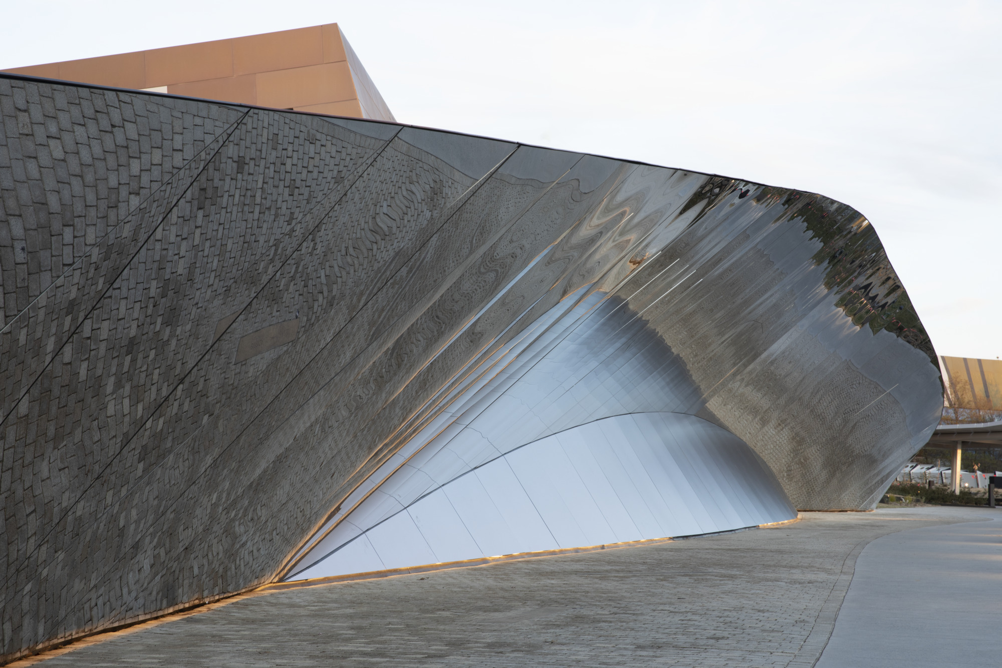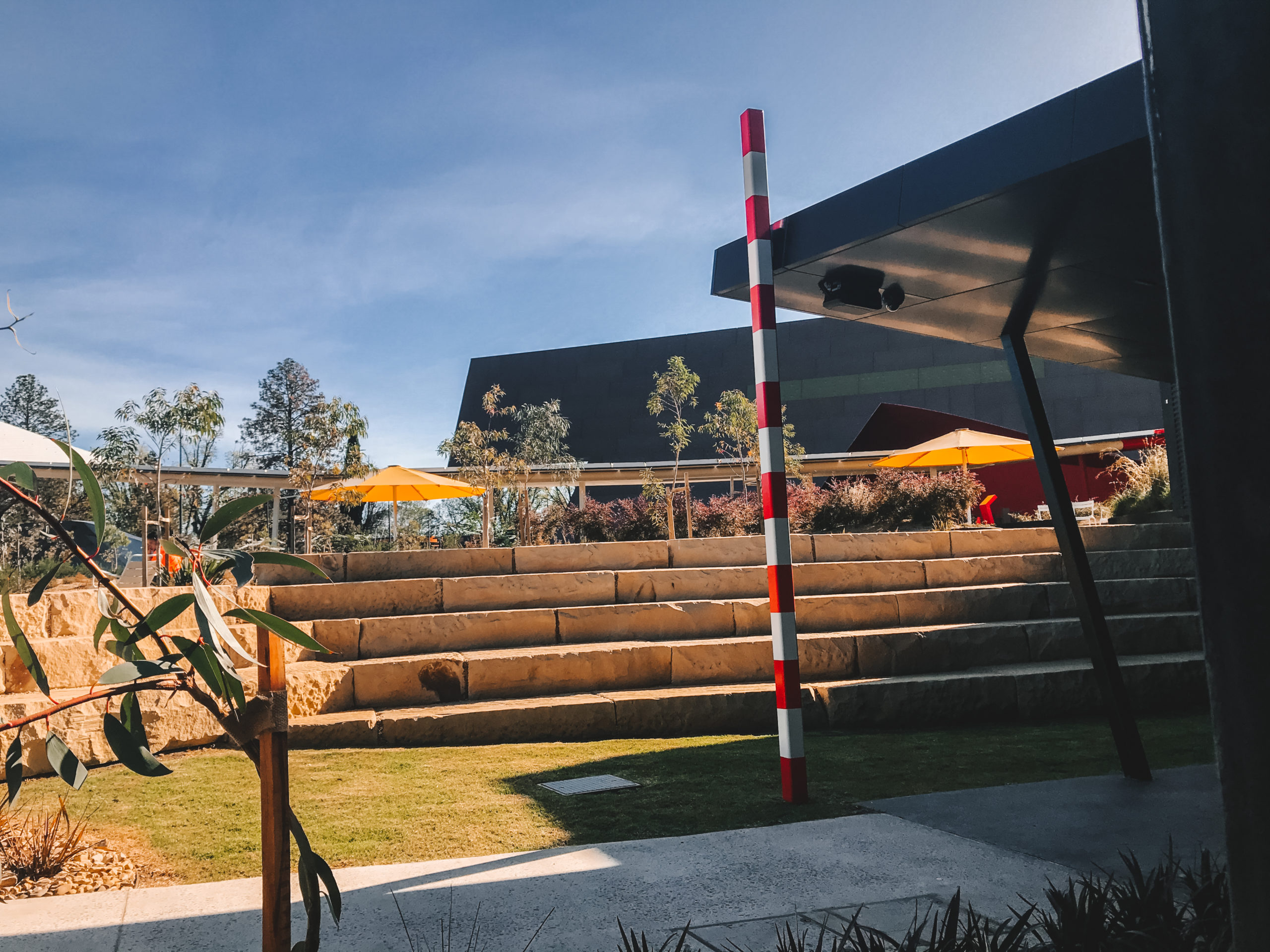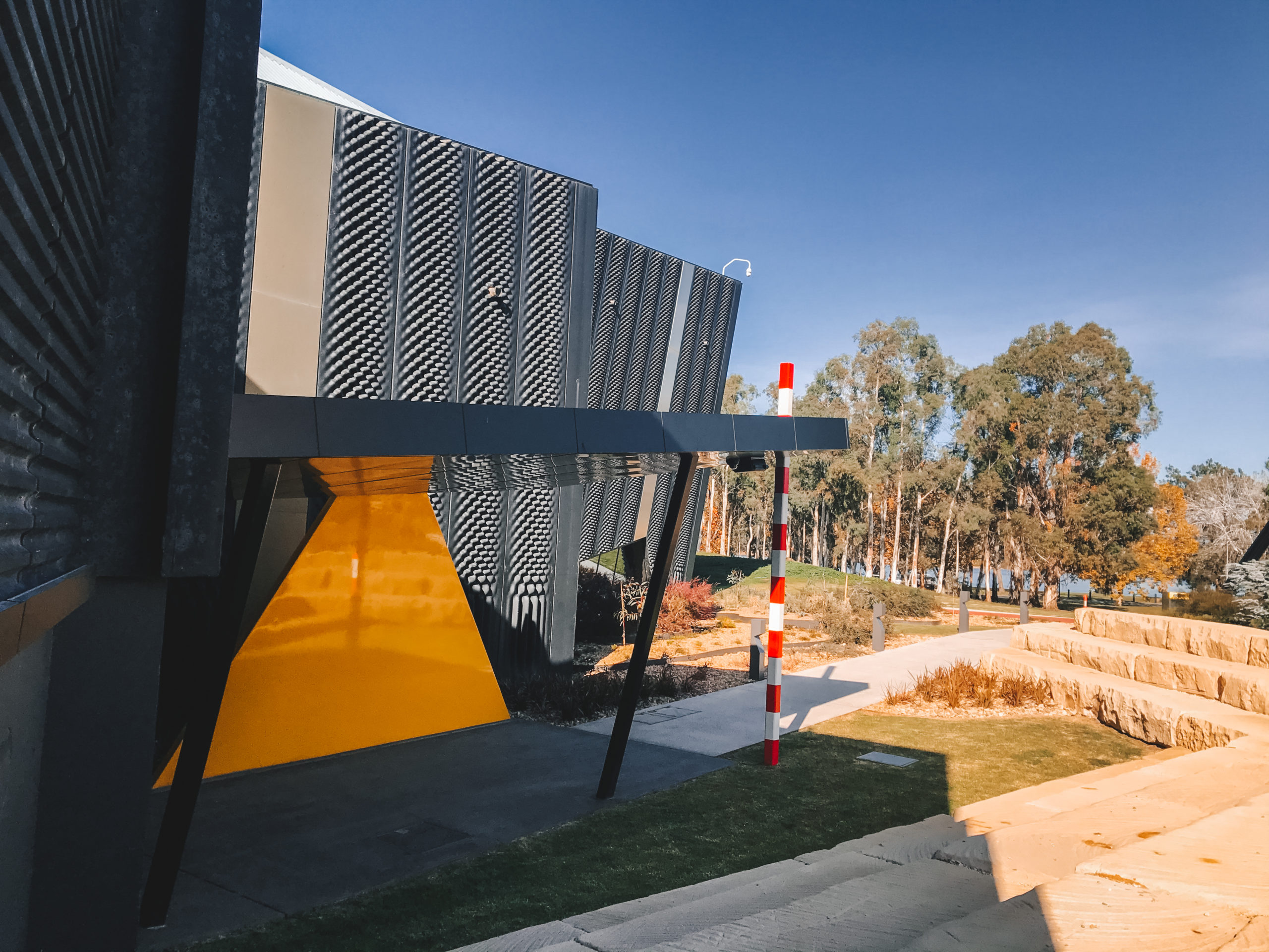 The upgrade of the Welcome Sequence, the Forecourt, and the front public entry defines a clear journey and arrival experience to the museum. This creation of a clear sense of Welcome forms an integral aspect of the museum experience and visit to the Acton Peninsula, allowing the visitors to engage with the site. The new works provide a diversity of experience, while increasing public realm amenity, accessibility, security, and an improved micro-climate in the Forecourt.The development showcases many unique features such as the Welcome Wall which is a large, multi planer structure, designed to appear as a continuous curve. The front face of the wall is clad with mirrored panels, imported from Italy, which are a prominent and striking feature to visitors, while gro-wall panels are mounted on the rear face to soften the wall into the landscape.