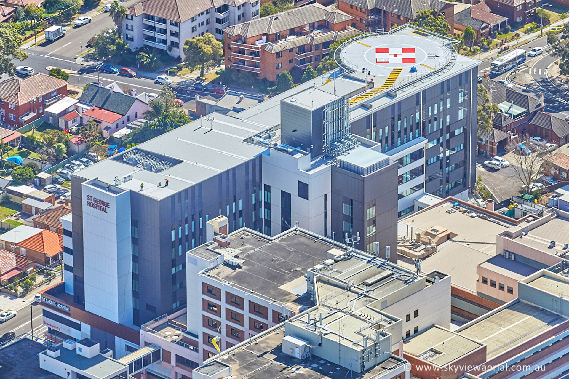 Built above the new Emergency Department on Gray Street, the Acute Services Building provides an intensive care department, high dependency unit, eight new operating theatres, 128 new inpatient beds, two cardiac catheter laboratories, sterilising department, and a rooftop helipad.