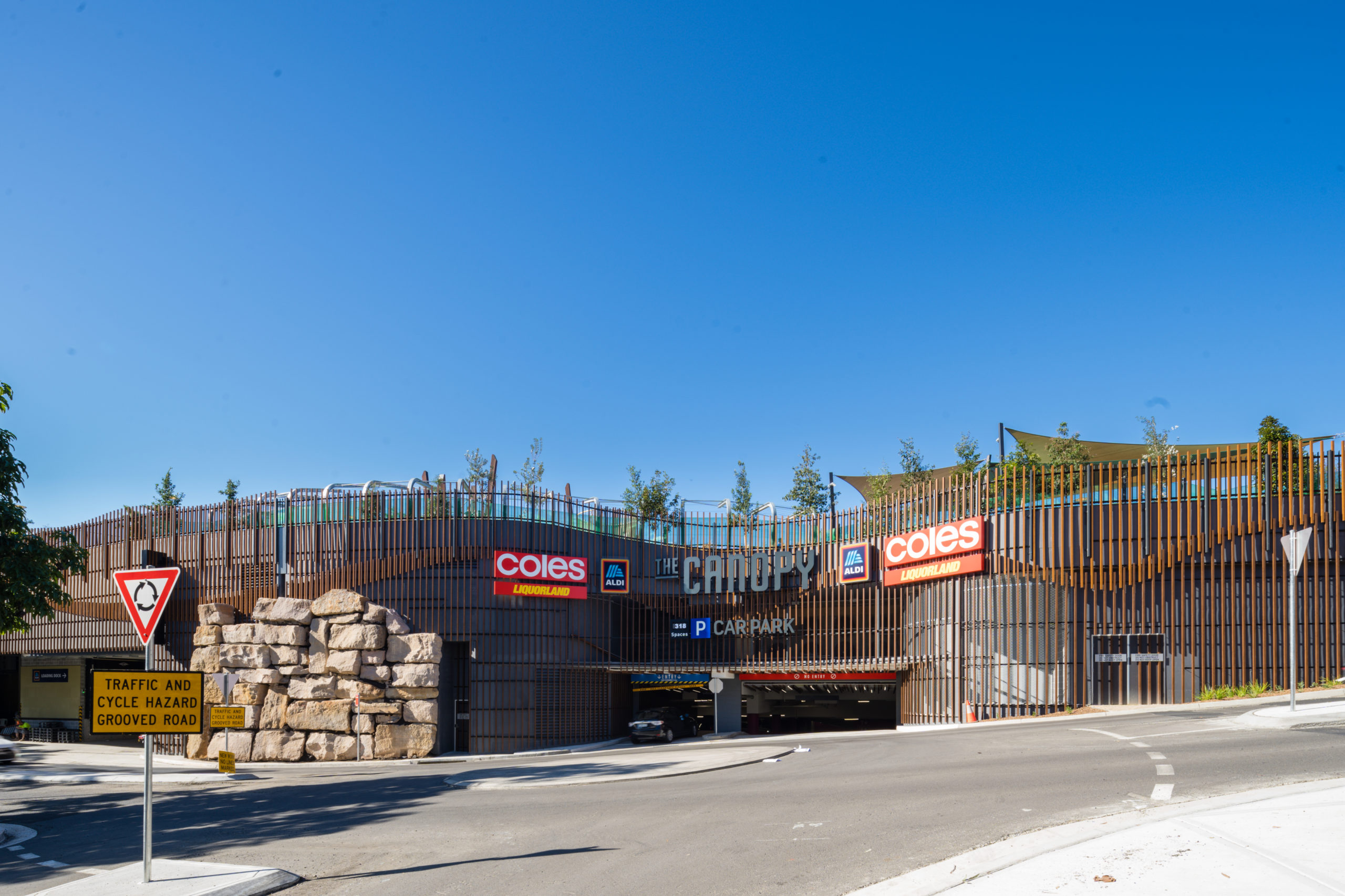 TTW provided structural, civil and traffic services for the Canopy in Lane Cove, funded by Lane Cove Council. This project replaced an existing at grade car park with a new village green, playground, restaurant precinct, Coles and Aldi supermarkets, and a 500 space underground car park.The project was undertaken in the town centre of Lane Cove, which involved careful consideration of access around the site during construction and review of offset temporary parking on site.