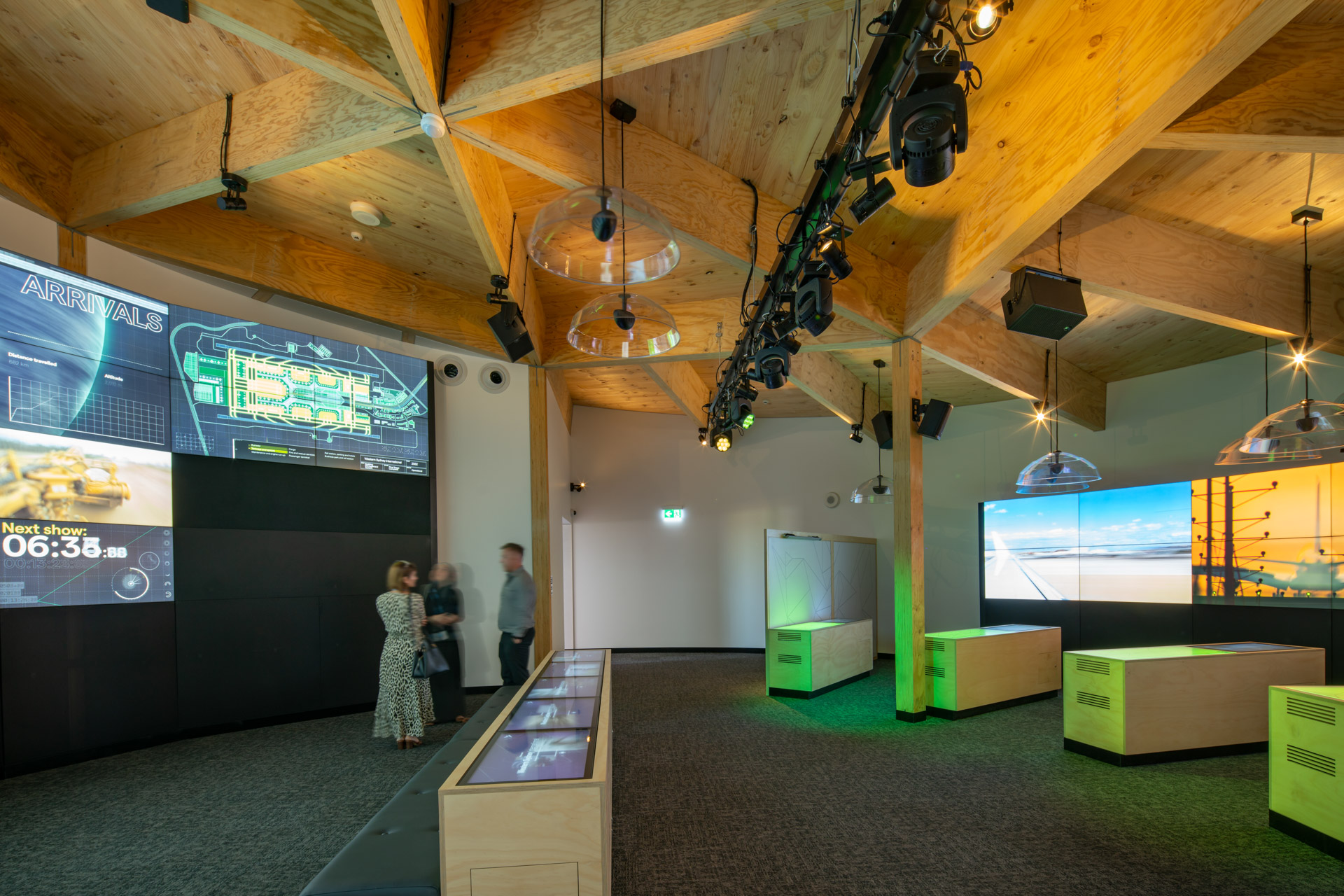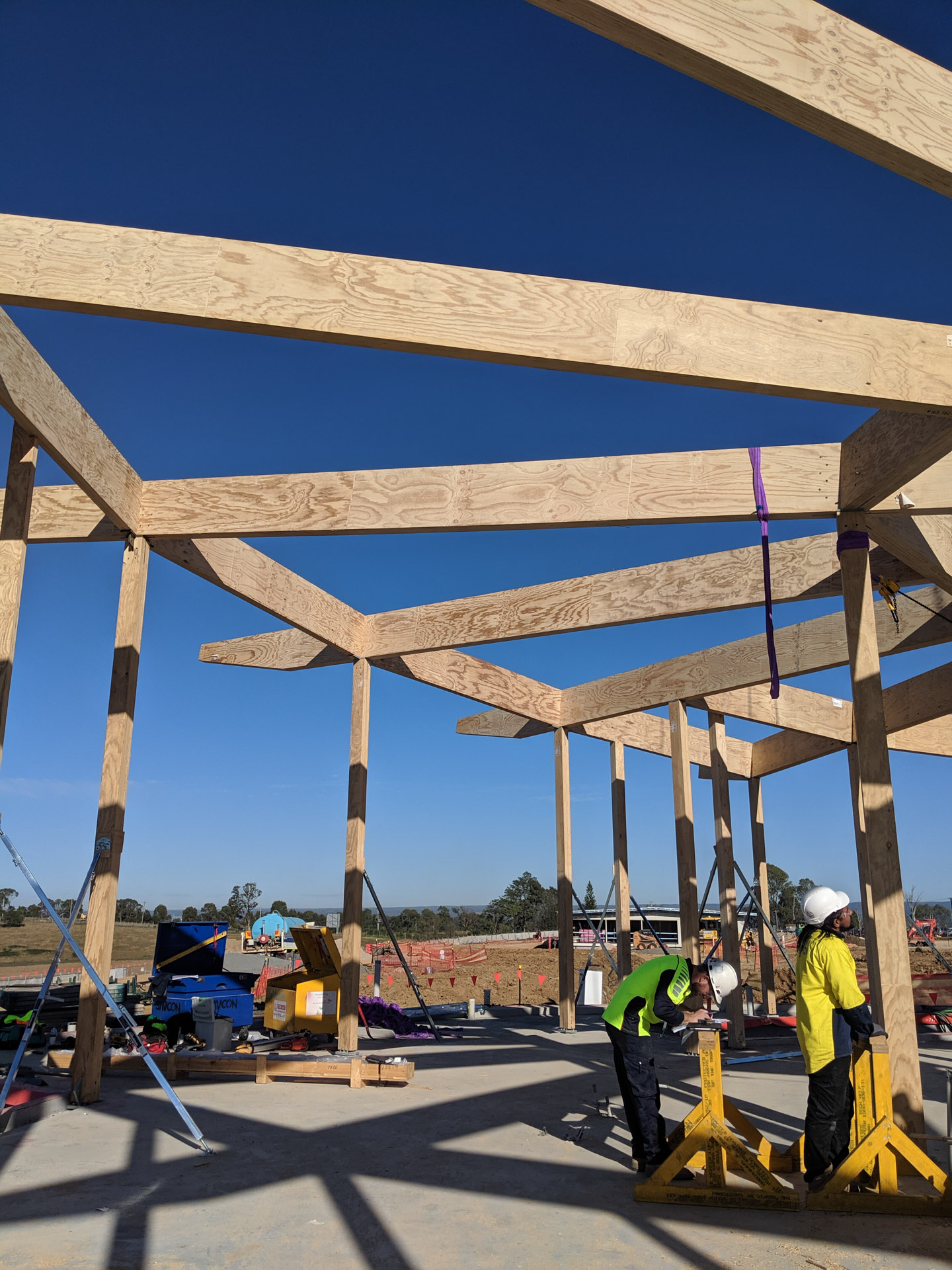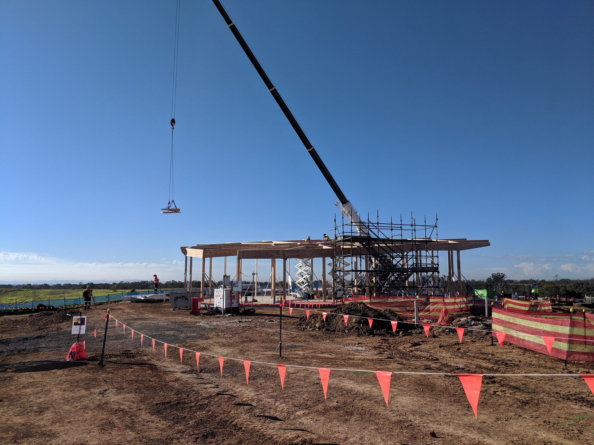 The Western Sydney Airport Experience Centre is an exhibition space showcasing the construction activity of the Western Sydney Airport. The 400 sqm education space features an exhibition hall, meeting rooms and a small kitchen. The general public will learn about the region and its people and understand the opportunities that will come from Australia's first smart airport. They will have a clear view of the future airfield and be able to see the airport come to lifeOne of the main requirements was the short timeframe delivery. The design team investigated prefabrication techniques and a mass timber structure was chosen. This achieved a fast and cost-effective installation while providing a warm finish to the internal spaces.